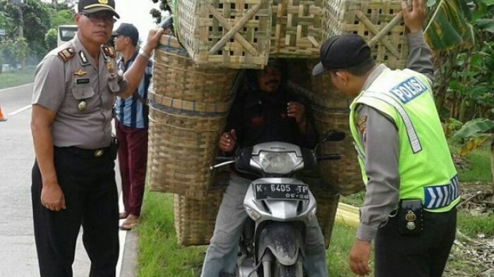 TRIBUNTRAVEL.COM - Dalam kondisi terpaksa, pengendara sepeda motor terkadang membawa barang bawaan sampai melebihi muatan.