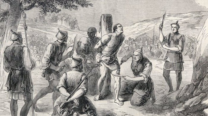 Hukuman ini sendiri dilakukan oleh orang-orang Roma di masa lalu.