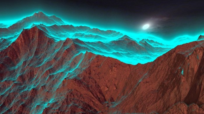 9. Cahaya bulan yang dipantulkan di puncak gunung