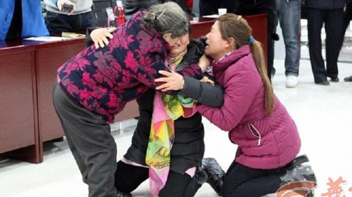 Tangis Chen Jiaxiang (72) pecah setelah ia bertemu dan bisa memeluk kedua putrinya.