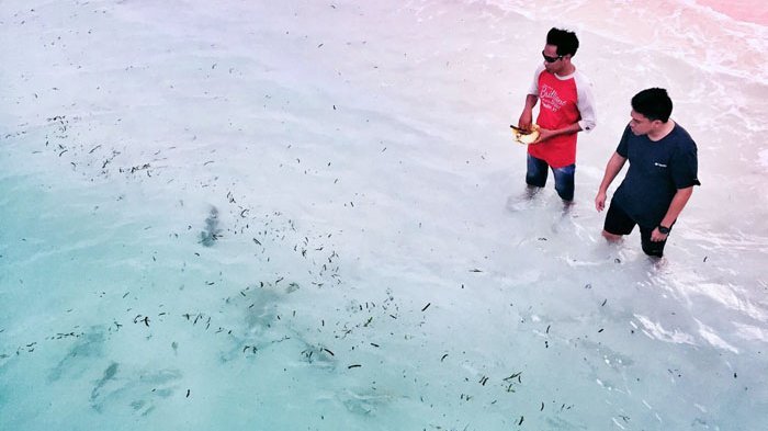 Jadi, tak perlu takut turun ke air di sepanjang pantai yang jernih dan dangkal tersebut karena mereka adalah anak-anak ikan hiu yang habitatnya memang senang berenang dan mencari makan di perairan dangkal.