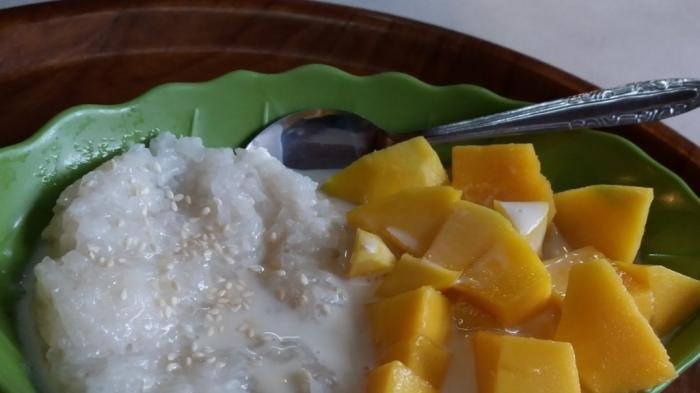 Menu ini terbilang unik lantaran tidak banyak dijumpai perpaduan ketan putih bersama mangga.