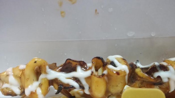 “Sudah dua tahun ini jualnya (cumi-cumi dan gurita). Sebenarnya kami spesial di cumi-cumi, hanya untuk tambah variasi di-mix dengan gurita. Untuk varian rasa ada dua, barbeque dan lada hitam,” ujar Tantra.