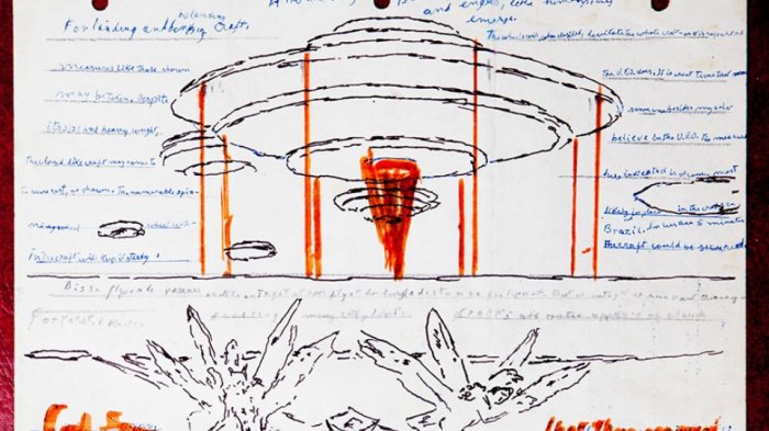 Lebih anehnya lagi, dalam dokumen-dokumen ini digambarkan dengan jelas sketsa UFO.