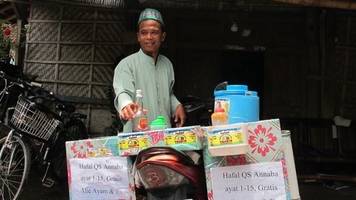 Sudah sekitar sebulan ini ia menerapkan program khusus bagi para siswa SD maupun MI (Madrasah Ibtidaiyah) yang menjadi pembelinya, yaitu gratis satu cup mi ayam dan es teh bagi pembeli yang hafal surat An Naba’ ayat 1 sampai 15.