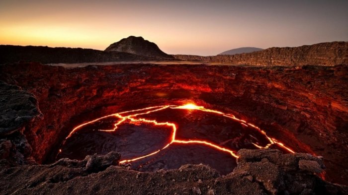 Danau lava panas di kaldera Erta Ale Volcano, Ethiopia