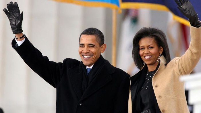 Dalam video tersebut terlihat, Obama berjalan sambil melambaikan tangan bersama istrinya, Michelle.