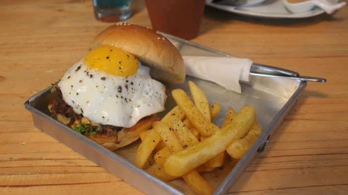 Dituturkannya, pulled beef burger menjadi salah satu andalan di kafe yang melayani pengunjung dari pukul 15.00 hingga 23.00 WIB.