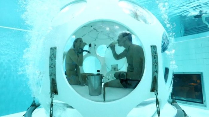 Tempat makan ini menawarkan pengalaman baru yang lokasinya berada lima meter di bawah permukaan kolam renang.