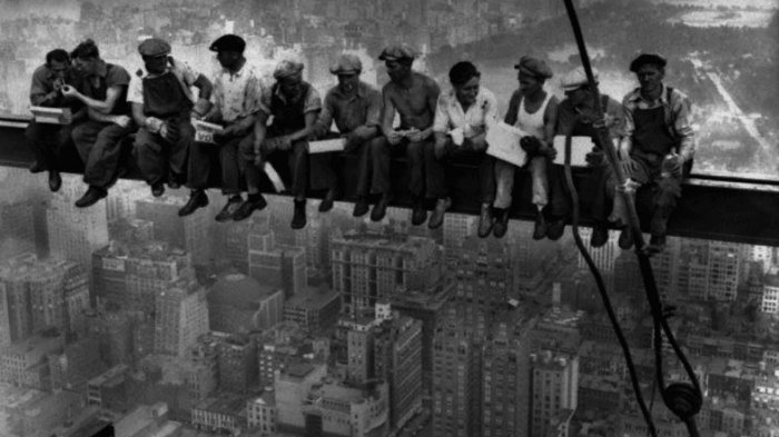 Diambil pada 1932, gambar ini menunjukkan pekerja gedung RCA di 30 Rockefeller Center, New York City duduk dan makan siang di ketinggian 69 lantai.