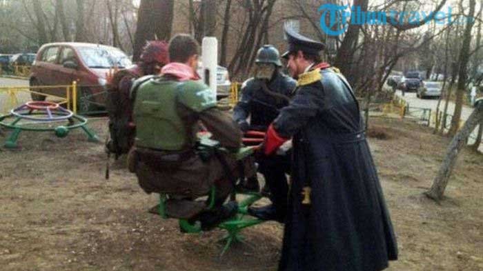 1. Lihat apa yang dilakukan para pria dengan kostum tak biasa ini