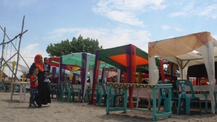 TRIBUNTRAVEL.COM - Puluhan kaum muda-mudi, tua, dan muda, plus mereka yang berkeluarga duduk santai di pantai “warna-warni”, Minggu (12/2/2017).