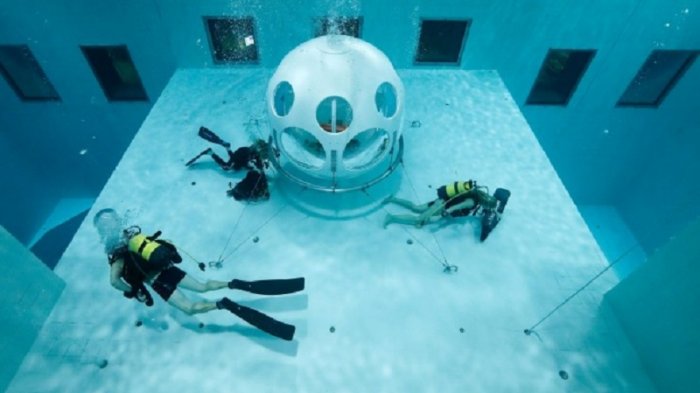 Disini, kamu akan menemukan restoran bawah air yang dibuka di salah satu kolam renang terdalam di dunia, di Brussels.