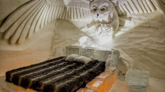 Kamu bisa menikmati sensasi menginap bangunan yang terbuat dari salju dan es