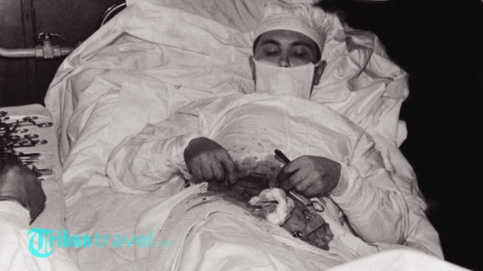 Tidak ada dokter lain di tempat itu sehingga mau tak mau dia harus melakukan operasi sendiri.