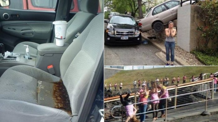 Bukan tumpah di tanah atau taman, tapi jok mobil.