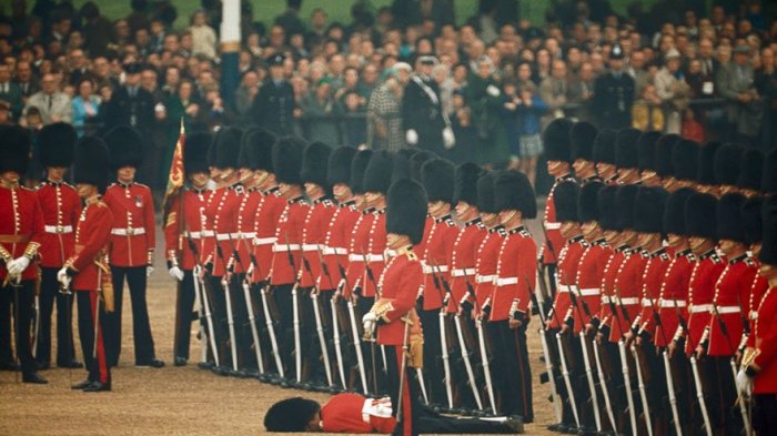 Penjaga Inggris ini tetap menjalankan tugas meski satu dari mereka pingsan.