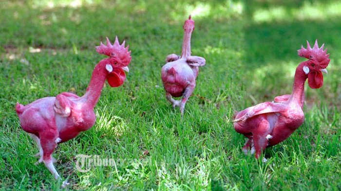 Dilansir TribunTravel dari Amusing Planet, ayam unik ini adalah persilangan antara ayam broiler dan juga ayam featherless neck atau leher tanpa bulu.
