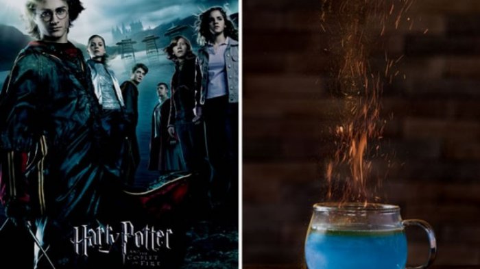 Satu di antaranya adalah Goblet of Fire Drink yaitu minuman biru yang bisa mengeluarkan api, seperti ada ilmu sihirnya, guys.