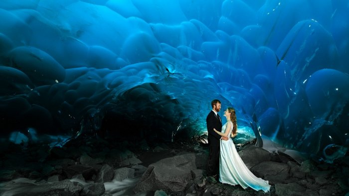 Foto prewedding epic dengan background langit-langit es bak terowongan siap menghipnotis setiap mata.