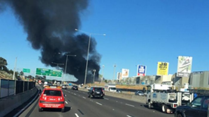 Jalan utama di jalur bebas hambatan yang berada di sepanjang bandara Essendon ditutup agar puing-puing sisa kecelakaan bisa dibersihkan.