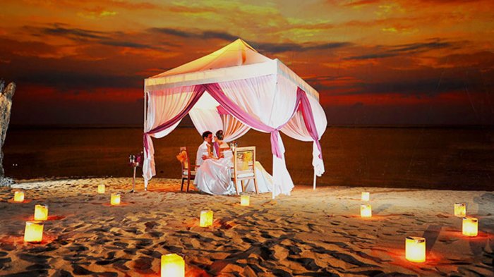 Pantai yang cantik dan penginapan mewah berhadapan langsung dengan laut ternyata disukai oleh para pasangan yang sedang dimabuk cinta.