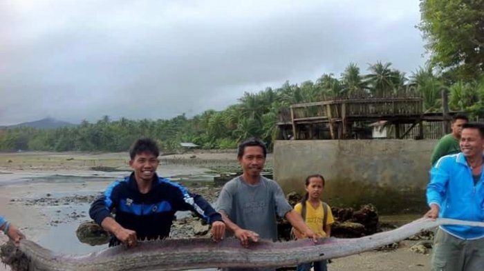 Oarfish, sejenis ular laut yang biasa ada di laut dalam ditemukan terdampar di Pulau Mondanao tepat menjelang gempa bumi dasyat pada 8 Februari lalu.