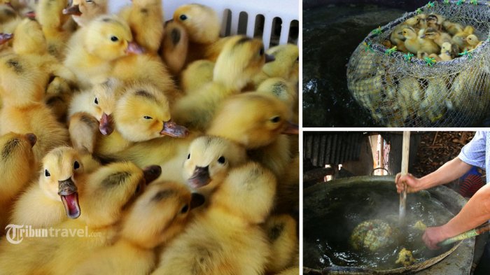 Mirisnya lagi, anak itik ini direbus dalam air mendidih dalam keadaan hidup-hidup, guys.