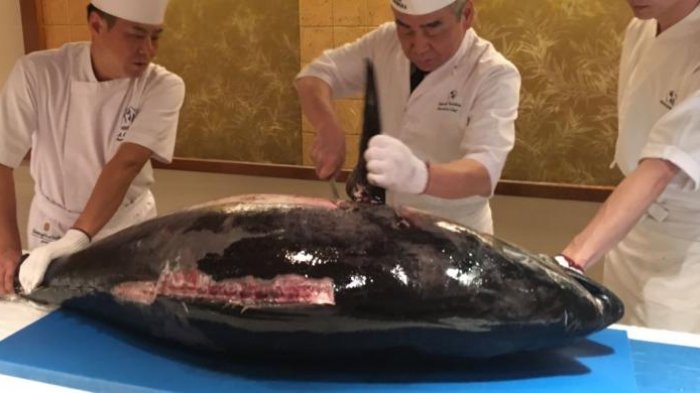 TRIBUNTRAVEL.COM - Chef Katsuki berdiri menghadap ikan tuna segar berbobot 70 kilogram yang baru didatangkan dari perairan Bali.