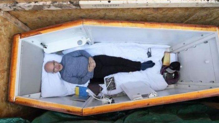 Semua kegiatan John selama tiga hari di dalam peti itu akan disiarkan lewat situs Walking Free dan Facebook.