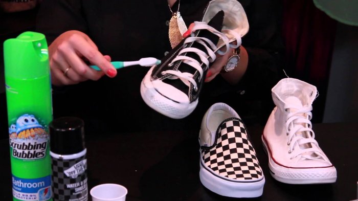 10. Sepatu berbahan kain kanvas dibersihkan dengan menggunakan sikat gigi bekas yang sudah dicelupkan ke dalam sampo karpet atau deterjen lembut.
