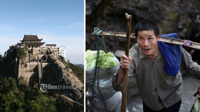 Ketika mengunjungi Gunung Jiuhua, kamu akan bertemu dengan porter bernama Wu Yougen (66).