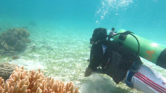 Namun perjalanan jauh akan terbayarkan degan keindahan pulau yang memiliki 14 spot diving ini.