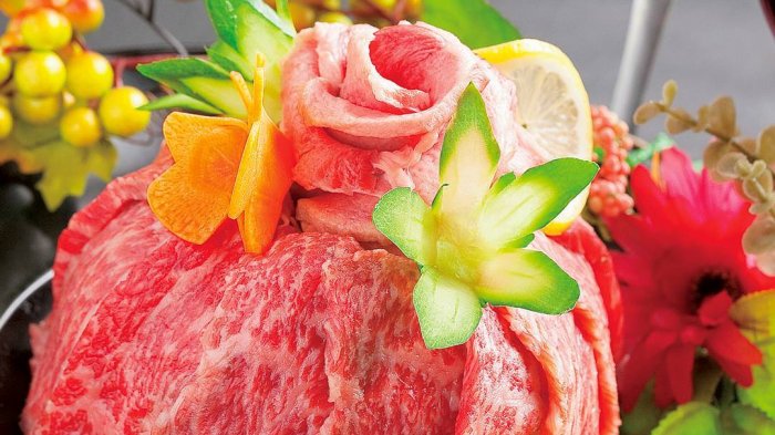 Kreasi ini juga disebut sebagai karangan daging.