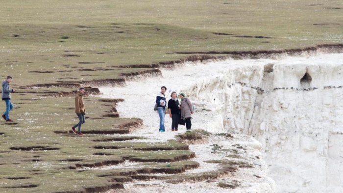 Penjaga pantai setempat mengatakan, "kami telah melihat sejumlah bagian tebing yang runtuh beberapa bulan lalu. Ini menjadi bukti kuat jika tebing kapur ini tidak stabil."