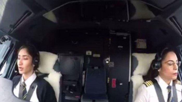 Dalam rekaman video memperlihatkan kedua pilot perempuan itu bekerja mengendalikan pesawat terbang canggih tersebut.