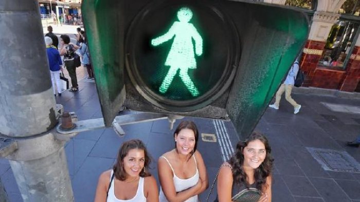 Tak seperti lampu lalu lintas pada umumnya, lampu lalu lintas di Victoria menampilkan simbol wanita.