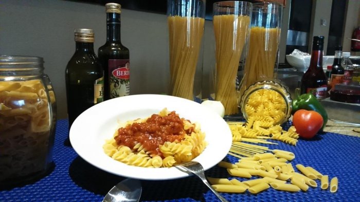 "Pilih sendiri pasta kesukaanmu, mulai dari spagetti, peenne, fusili, cafadeli, dan lainnya."