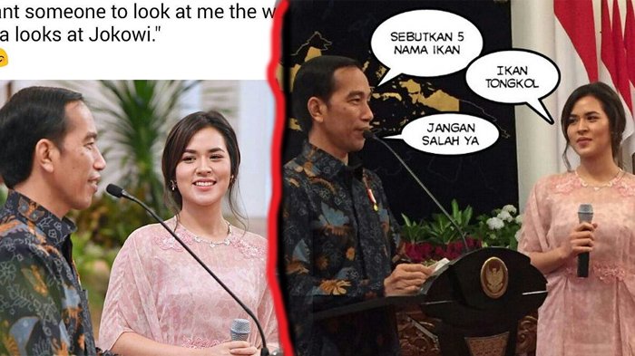 Namun, momen yang unik dan dijadikan candaan oleh netizen adalah tatapan Raisa ke Jokowi.
