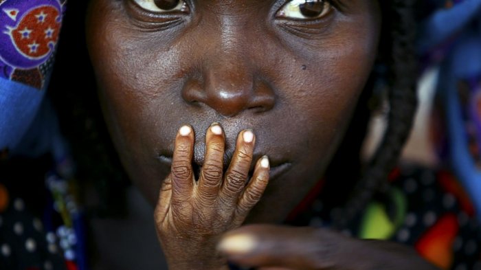 Foto ini menunjukkan seorang ibu dan anaknya mengantisipasi kelaparan.