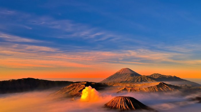 Salah satunya adalah Gunung Bromo yang berada di kawasan Taman Nasional Bromo Tengger Semeru di Jawa Timur.