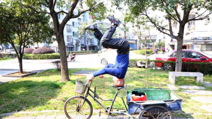 Dalam posisi ini, Zhu bisa mengayuh sepeda sejauh 300 hingga 400 meter, seperti dilansir dari laman shanghaiist.com.