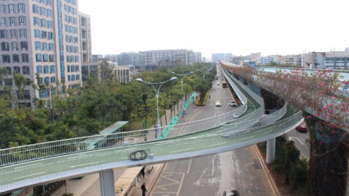 Jalur pertama ‘bike lane in the sky’ mencakup lima daerah pemukiman utama di Xiamen dan tiga pusat bisnis.