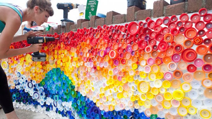 Ada banyak karya menarik yang dibuat dari botol plastik bekas, atau pun dari tutup botolnya.