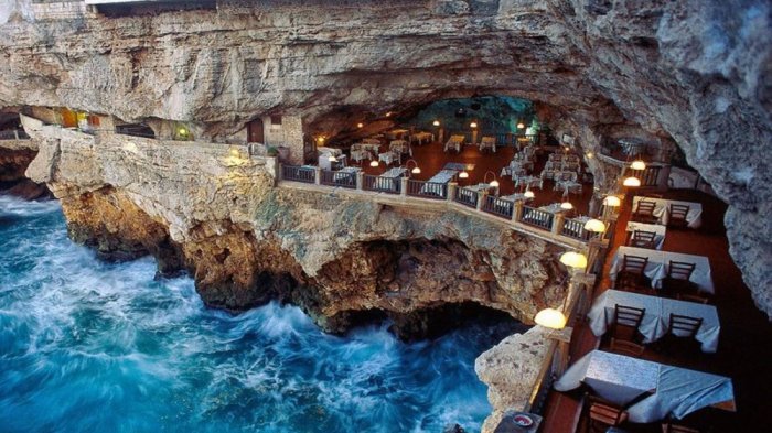 Restoran Grotta Palazzese di Bari, Italia ini juga dijadikan sebagai tempat resepsi pernikahan.