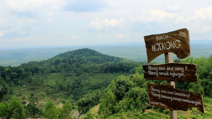 TRIBUNTRAVEL.COM - Puncak Ngekong merupakan sebuah bukit yang terletak di daerah Padukuhan Gunungbutak, Desa Nglanggeran, Kecamatan Patuk, Gunungkidul.