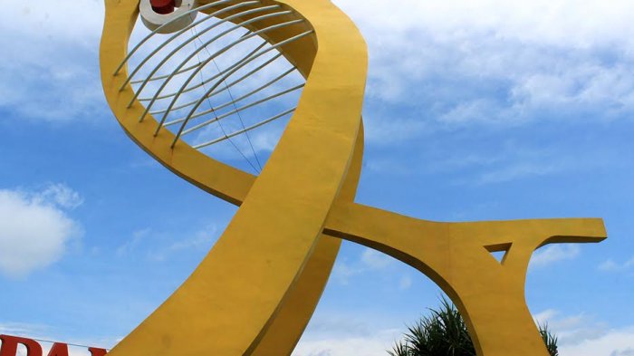 Ikon baru yang lebih menyerupai kerangka ikan tersebut, terbuat dari cor semen yang dicat dengan warna kuning.