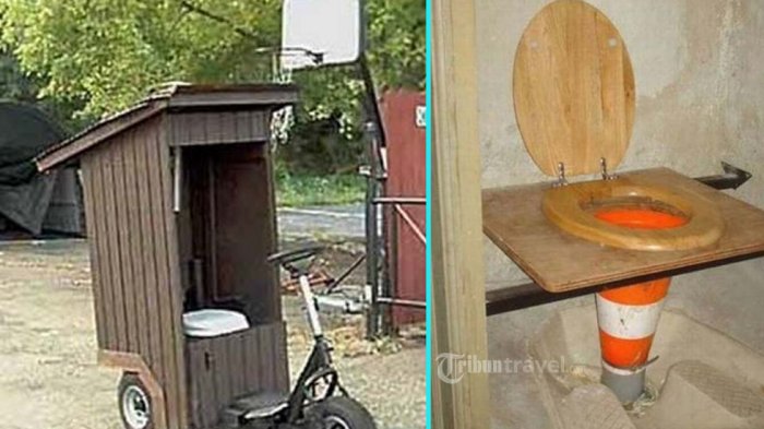 Bayangin aja kalau toiletnya model begini, bisa-bisa kalian buang air massal.