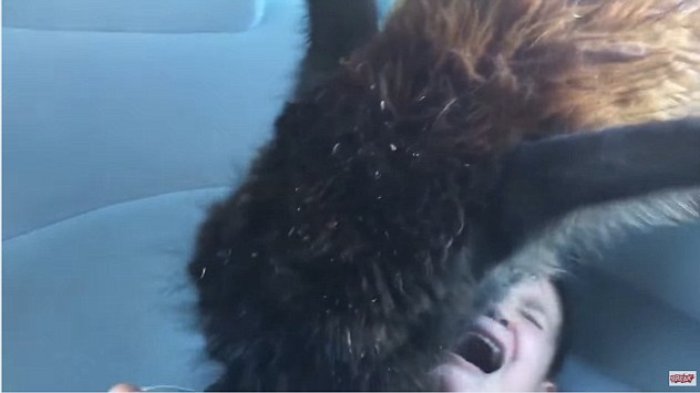 Sebuah video yang diambil dari dalam mobil menunjukkan keluarga itu sedang berkendara melalui beberapa llama.