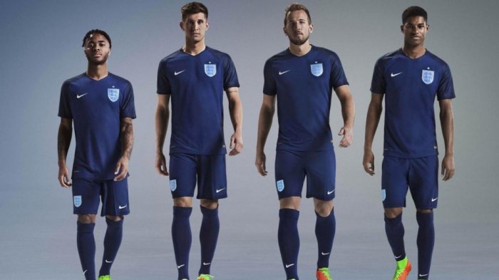 Setelah warna putih dan merah pada jersey pertama dan kedua, kini Nike, apparel olahraga yang mensponsori Inggris, membuat jersey dengan warna dominan biru tua untuk third kit.
